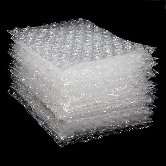 Protective plastic packaging with air-filled bubbles, designed to absorb shocks and protect products during transport.